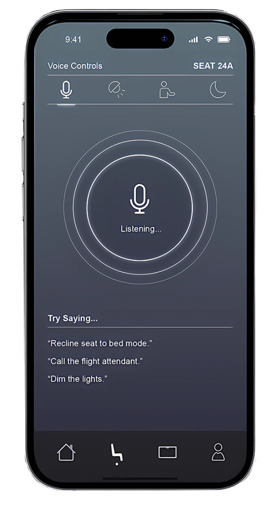 Audio and haptic feedback – passengers can receive alternative sensory feedback from control inputs. For example, passengers with hearing impairment can set an alarm and receive haptic vibrations from the seat when it’s time to wake.