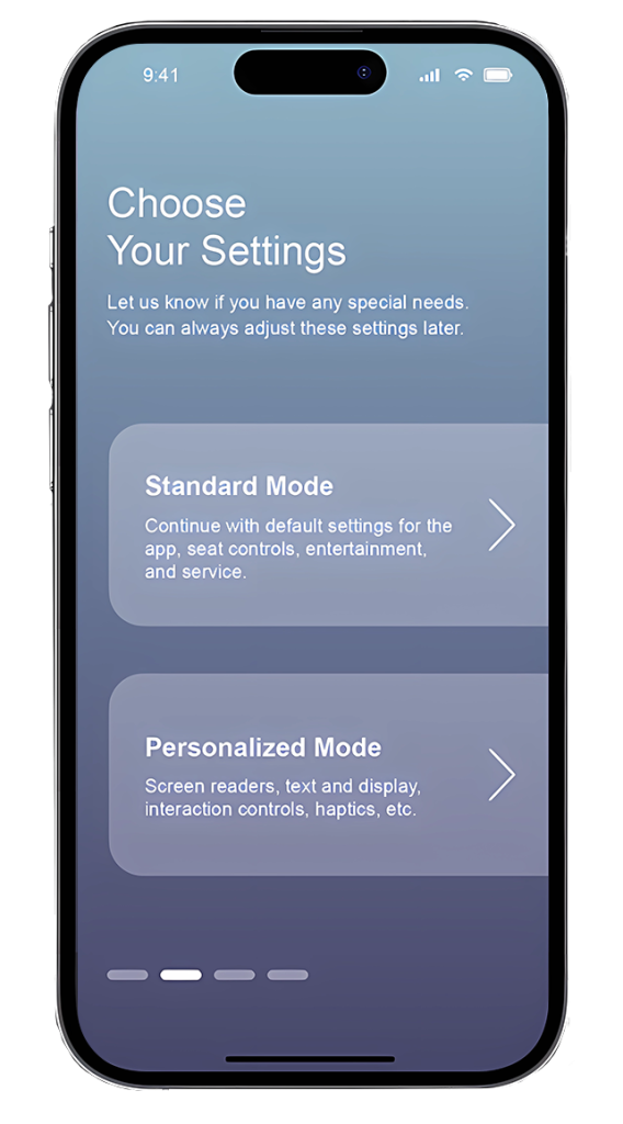 ADAPT combines with MAYA’s user interface, empowering passengers to utilize their smart phone to control their travel environment. Passengers can enjoy a range of mobility, sensory, cognitive and language accommodations through this platform. ADAPT also responds intuitively in real-time to passengers’ needs using AI-powered InteliSenceTM technology.